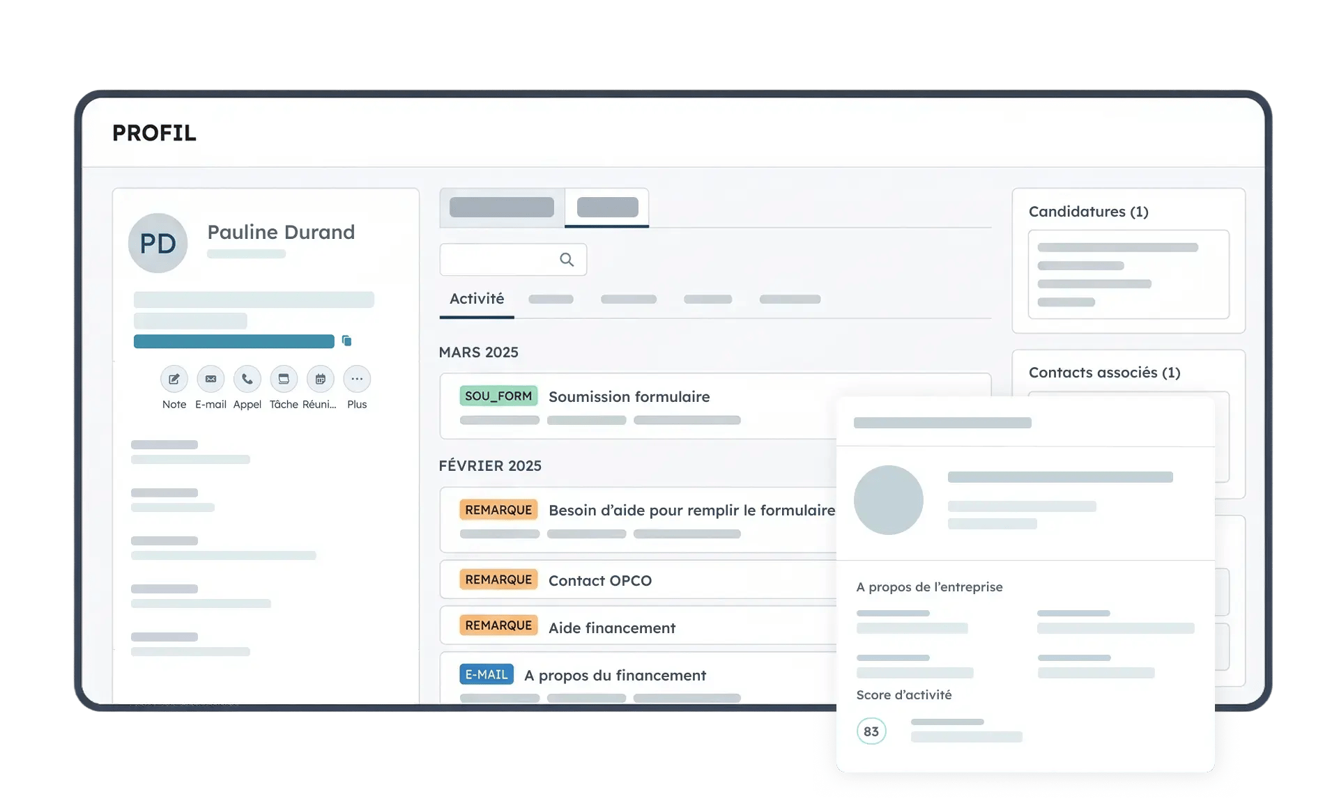 - Affichage conditionnel des champs selon le type de contact (ex. : informations académiques masquées sur la fiche d'un parent)